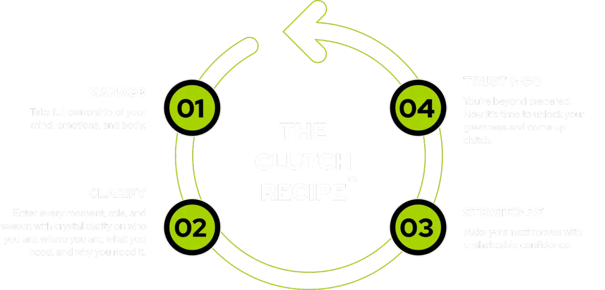 In three days, you’ll know how to confidently and consistently implement The Clutch Recipe™ – the go-to transition mastery system for some of the world’s top athletes and executives.